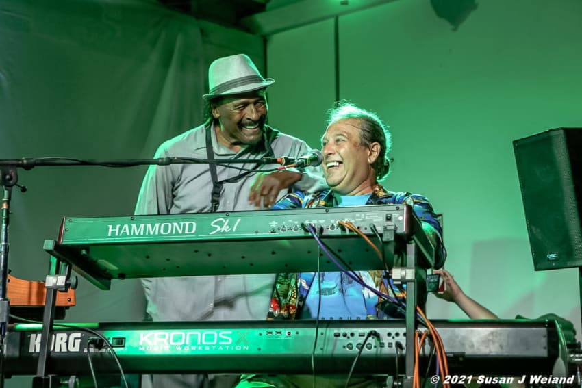 Backing Napoleon at every turn, the orchestra featured Chargin’s effervescent personality, vocals and driving keyboards, along with a trio of expressive backup vocalists – Mike Boston, Lainey Leone and Suzi Baker. Napoleon Murphy Brock delivered most of the night’s vocal drama and contributed tenor sax and flute in complicated compositions like, “Echidna’s (Arf of You), from the Live at the Roxy era.